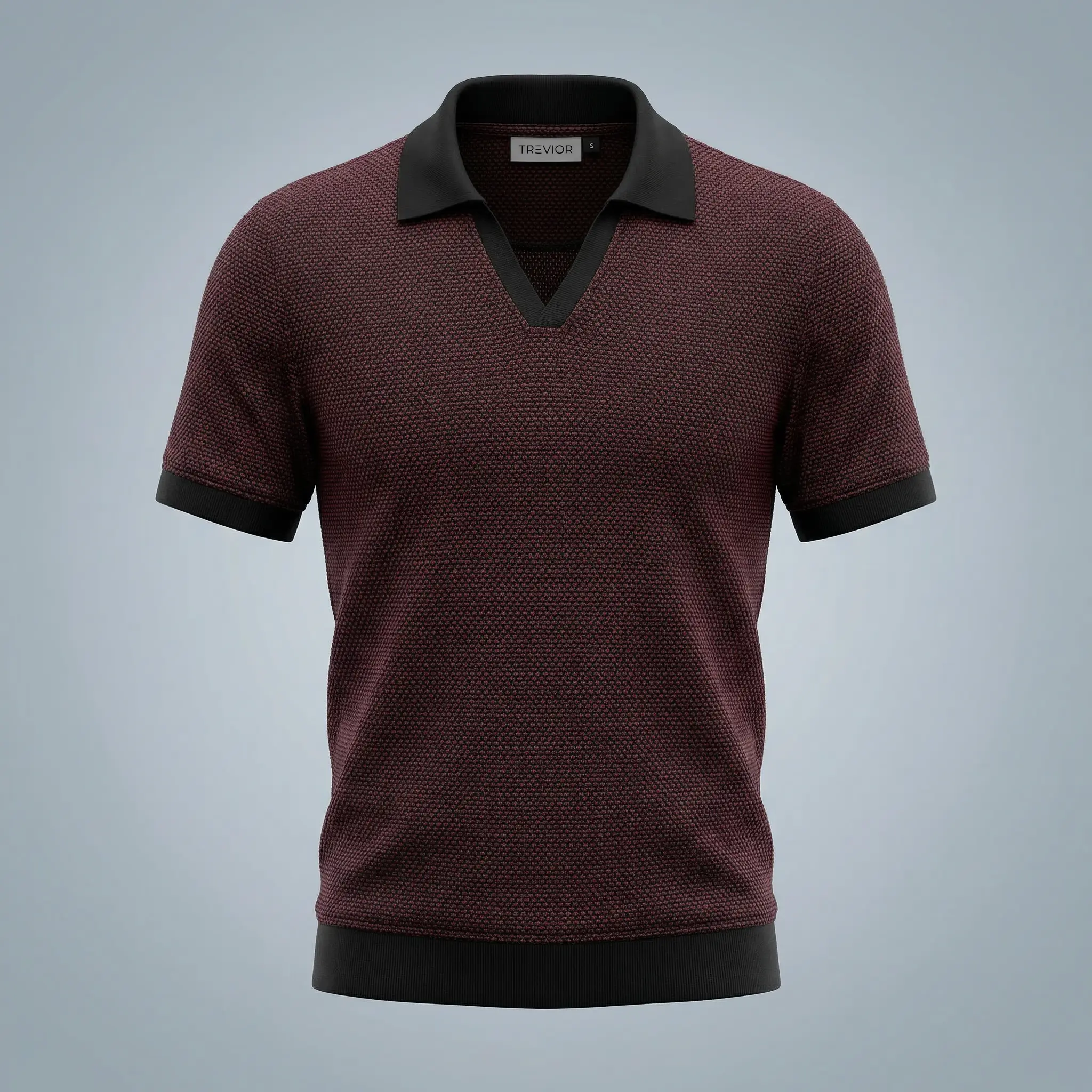 Trevior Premium Popcorn Yarn Dyed Slim Fit V-Neck Polo Shirt for Men – Winery & Jet Black